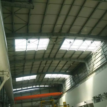 呼市某炭纖維公司采用的是我公司十年質保5mm厚度透明陽光板共47600塊做采光帶,既保溫又采光。陽光板材料性能透光:適光率高達88%節能:傳熱系數(K值)低、隔熱性好,節能量是...了解詳情 +